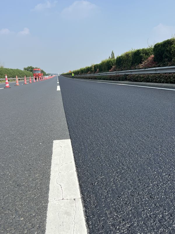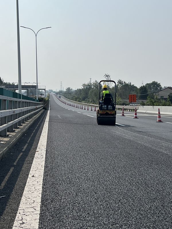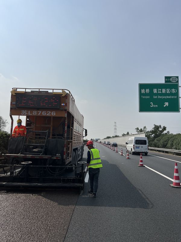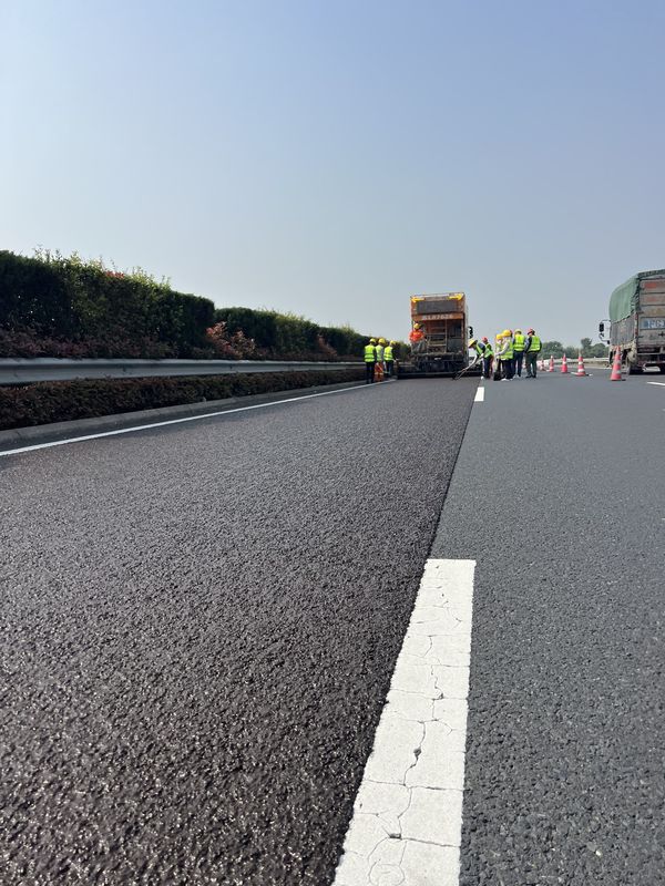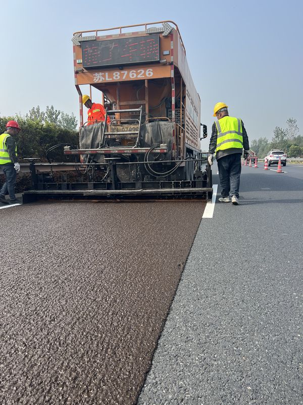 SBS高黏乳化瀝青冷拌冷鋪,單粘徑超薄低噪抗滑磨耗層施工現(xiàn)場。